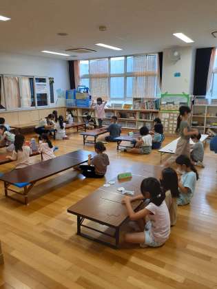 雨が、やみましたが、部屋で、ミサンガを楽しそうに作っていました。