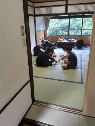 宿に戻り、食事までの間、部屋でトランプなどで遊んでいます。