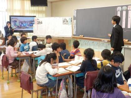 残された動物になりきって、子どもたち一人一人が自分のセリフを考えて交流しました。3年2組の子ども達も衛藤先生も、みんな頑張りました。いい授業でした。