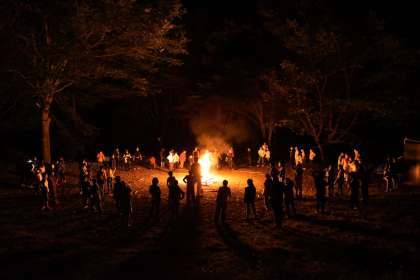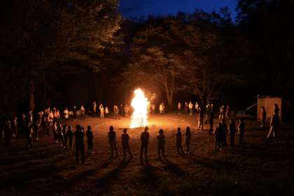 5年生 川場移動教室14 キャンプファイヤー 公開日 2022/09/14 更新日 2022/09/14 5年 1日目最後のイベントはキャンプファイヤーでした。 全員で火を囲み、歌い踊り、最高の時間を過ごしました。 いいね(0)