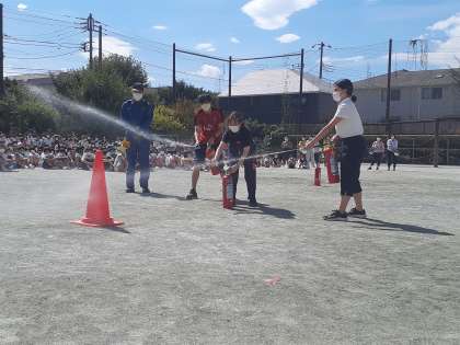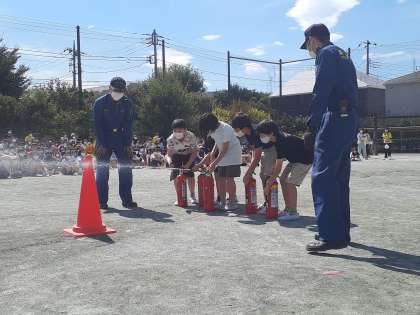 また、先生たちや代表児童が、実際に消火器を使う訓練もしました。