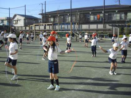 朝の給田タイム「短縄」の様子です。寒さに負けず、みんな薄着でとっても元気です。
