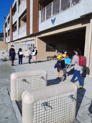 先週の水曜日から六年生が挨拶運動をしています。手作りのペープサートや看板を持ち、下級生に挨拶を呼び掛けています。