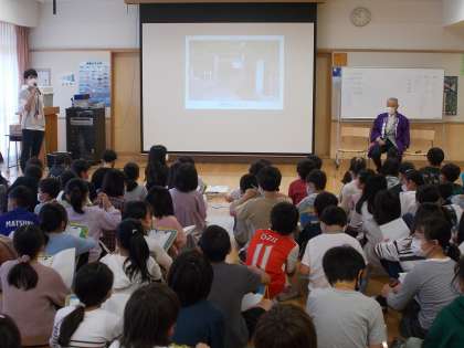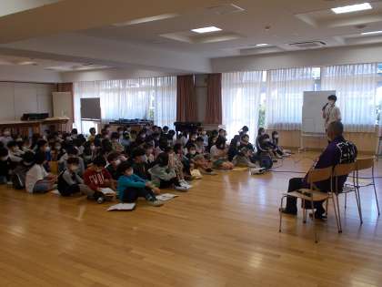 六所神社の方をお呼びしての話 公開日 2022/11/10 更新日 2022/11/10 4年 六所神社の関係者の方をお呼びして、神社の歴史等についてお話を伺いました。とても真剣に4年生は聞いていました。 いいね(0)