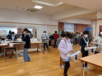 5年生は鼓笛の引き継ぎに向けて、楽器体験をしました。