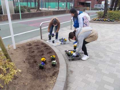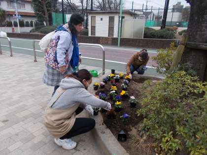 本日、グリーンサポーターの方が来て、花を植えてくれました。入学式の1年生を迎える準備です。ありがとうございます。
