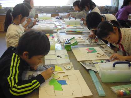 [2012年2月10日(金)]初めて電動糸のこぎりを使った4年生のカラフルパズル