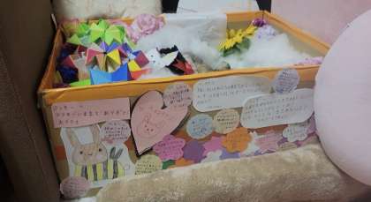 いつもたくさんの人に囲まれていたラッキーが寂しくないように、図工の先生が作った棺には、先生たちや歴代の飼育委員会委員長のメッセージを貼り付け、華やかな旅立となりました。