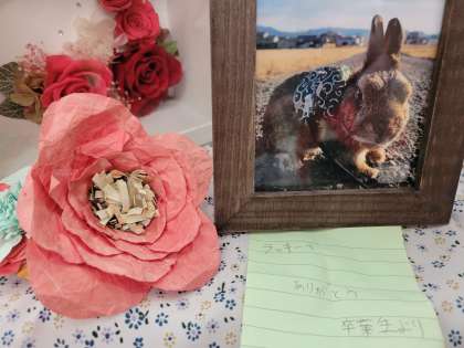 ラッキーへのメッセージ 公開日 2023/04/10 更新日 2023/04/10 行事 3月23日にお月様に旅立ったラッキーにメッセージが届きました。 朝、北門に貼ってあり、主事さんがラッキーに届けてくださいました。 とっても素敵なメッセージ、ラッキーの遺影にお供えしました。 きっとお月様のラッキーにも届いていると思います。 いいね(0)