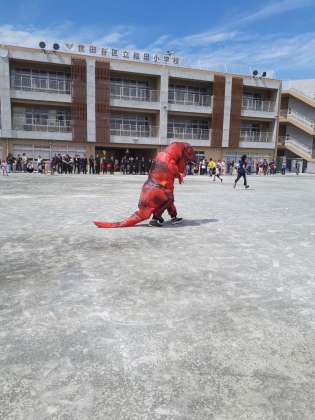 今日は給田小学校のお父さんたちの会Yamamotoによる逃走中のイベントがありました。300人を超える参加者で、大盛り上がりでした。ハンターたちが登場すると、子どもたちから歓声が上がりました。