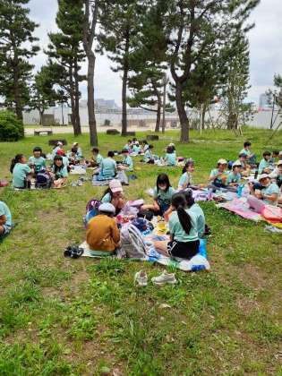 1、2組が潮風公園に着きました。爽やかな風が吹いていて、とても気持ち良いです。