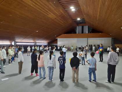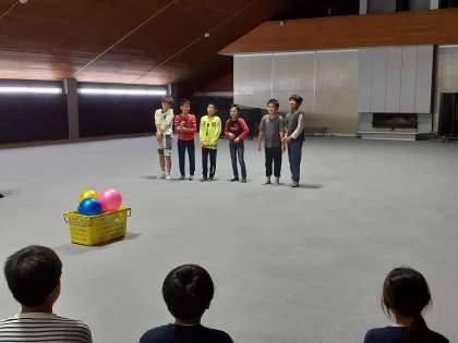 雨でキャンプファイヤーがなくなり、室内レクをやりました!