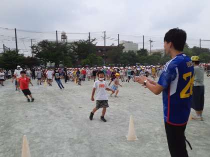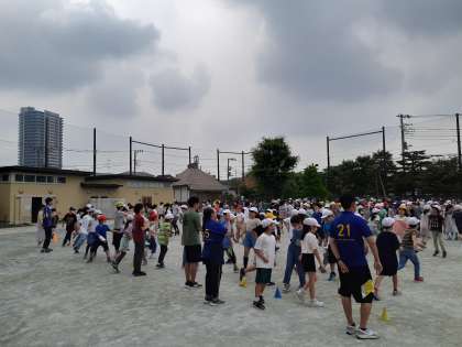 朝の時間を使って、全学年による長縄をしました。蒸し暑いなか、元気よくとびました。