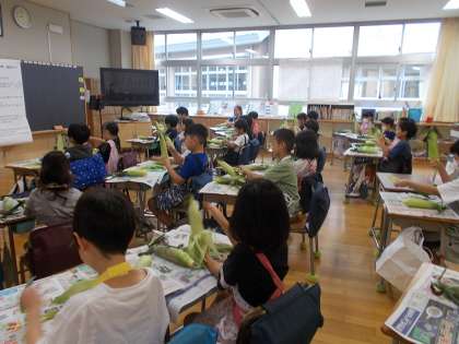 とうもろこしの皮むき 公開日 2023/07/14 更新日 2023/07/14 2年 2年生の児童が、今日給食に提供する「とうもろこしの皮向き」に挑戦しました。栄養士の先生の話を聞いて、とても楽しそうに皮むきをしていました。給食がとても楽しみです。 いいね(0)