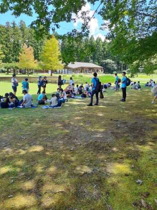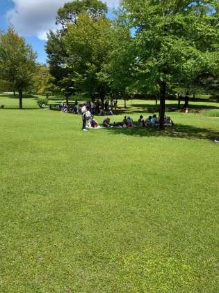 だいや川公園に着きました。天気がいいので、日陰をさがして、お弁当を食べます。