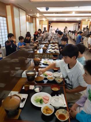 朝食の時間です。しっかり食べてハイキングに備えてほしいと思います。