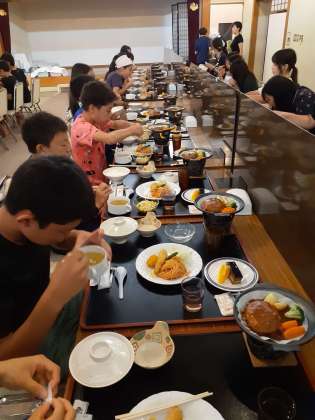 2日目の夕食です。ハイキング後なので、お腹がすいたことでしょう。