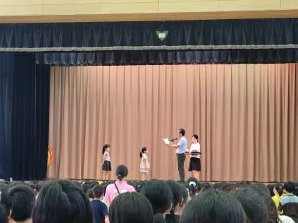 全校から大きな拍手をもらい、とても誇らしげでした。