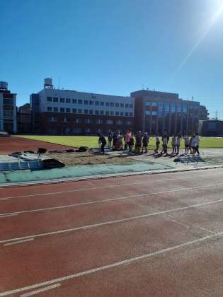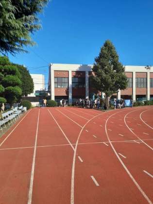 日本女子体育大学のグランドを借りて、連合運動会の練習をしました。100メートルの直線を、走りました。朝から頑張りました。