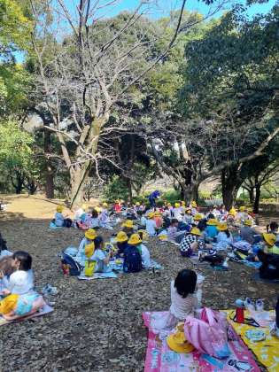 グループ毎に固まってお弁当をいただきます。お菓子もあるよ、と嬉しそうに見せてくれました。