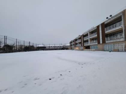 普段子どもたちが駆け回っている校庭も、真っ白な雪に包まれると、なんだか物静かな感じがしました。
