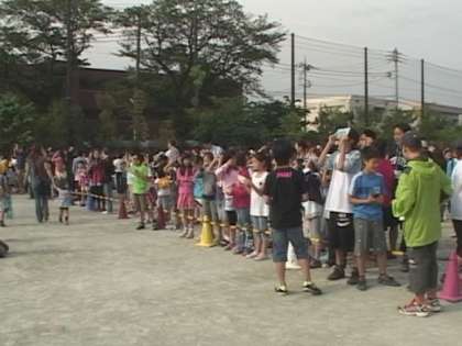 保護者の方たちや有志の方たちのご協力で、早朝から校庭で金環日食の観測会を行いました。