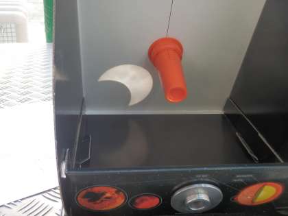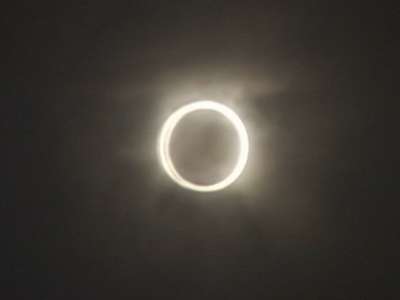 日食グラスを貸し出し、太陽投影装置3台とピンホール観察用の紙や装置も準備して、行いました。金環になった瞬間、のべ1000人ほどの歓声と拍手が沸き起こりました。