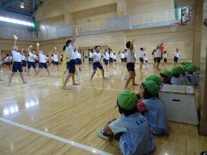 活気あるかけ声と熱気あふれる踊りで、園児を魅了できたと思います。