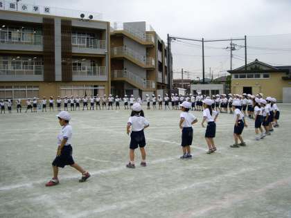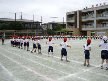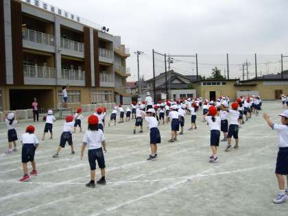 1年生の運動会の得点種目は「チェッコリ玉入れ」お尻ふりふり、玉入れの合間のダンスが見ものです。