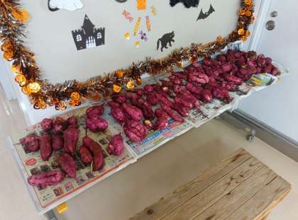 昨年度よりも畑の土が良かったことに加え、栽培委員会の子どもたちがお世話を頑張った結果、昨年度の10倍ほどの収穫量になりました!