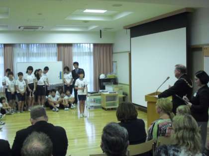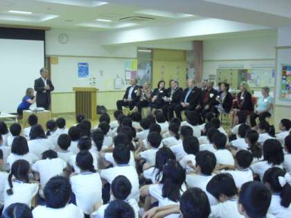 バンバリー市長のお話の後の質問タイム。たくさんの6年生が、英語でバンバリーについて質問しました。質問内容、しっかり伝わっていましたよ!おつかれさまでした。