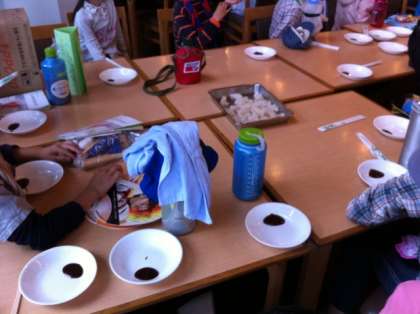 [2012年6月20日(水)] 川場からのメッセージ その2 5年生 公開日 2012/06/21 更新日 2012/06/21 5年 コンニャク作り初体験。粉を混ぜ、凝固剤を入れてから、お湯で煮ます。 手作りなので味わい深かったです。 いいね(0)
