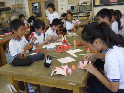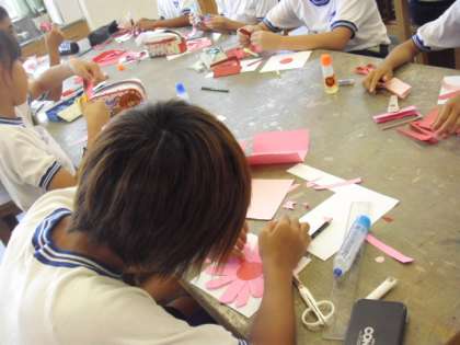 10月6日に行われる50周年記念式典には、体育館のギャラリーに、全校児童が一人一つつくった花が飾られます。どの子も心を込めて丁寧につくっています。これらは、当日、正に式典に花を添えてくれることでしょう。