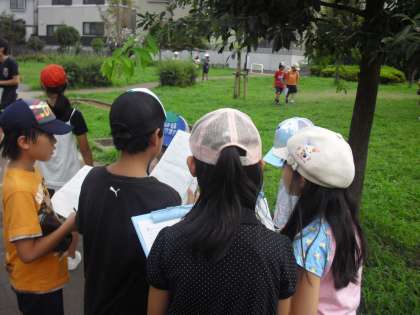 まだ残暑が続く9月21日(金)学校近くの4丁目公園へ夏の生き物探しをしました。「春の生き物ビンゴ」を使って、春から夏で生き物はどのように変化したか観察しました。「生き物が活発に動いている!!」「春に比べ植物が生い茂ってきた」など季節の変化に伴って生き物が変わる様子が見られたようです。