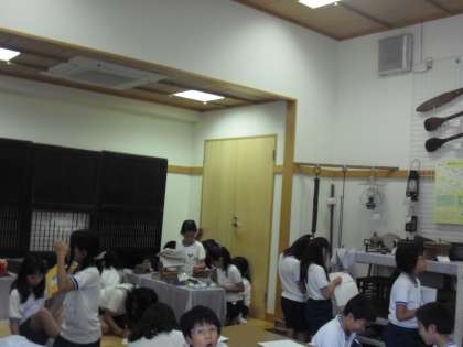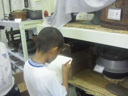 社会科では現在昔の道具について学習しています。給田小学校には素晴らしいことに郷土学習室があり、保存会の方が丁寧に保存していただいている生活品や農具が展示されています。子どもたちも生で道具を見学でき、道具の使い方などたくさんの疑問や気になることをノートに書き込んでいました。