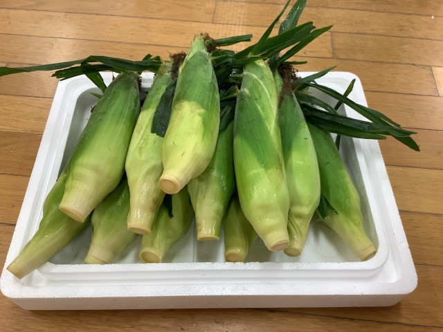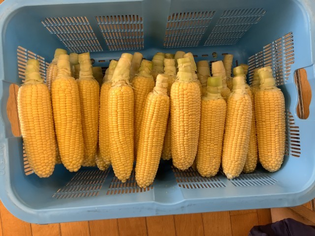 皮むき中には、「硬くて難しい」「皮もとうもろこしの匂いがする」「とうもろこしの粒が〇〇個ある」など一生懸命取り組んでいました。