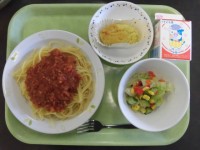 ★今日の献立・スパゲッティミートソース・イタリアンサラダ・スイートポテト・牛乳 ...