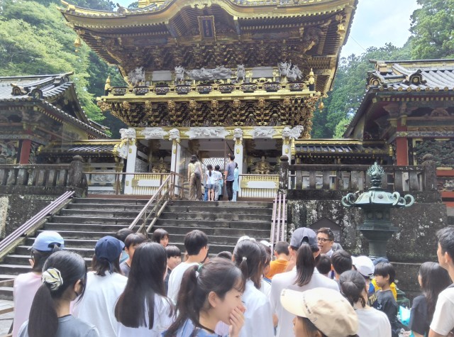 雨に降られることなく、東照宮の見学が終わりました。クラスごとにガイドの方のお話を聞いています。興味をもってよく聞いていました。ガイドさんから、とてもよく聞いてくれてありがたかったとのお話しをいただきました。