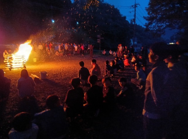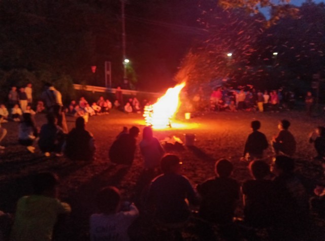 涼しい風が吹いています。キャンプファイヤーを行いました。各クラスで〇〇の火を宣言しました。