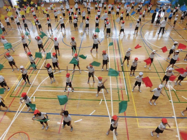 朝、小雨が降ったので、今日のリハーサルは明日に延期になりました。体育館で学年の最終練習が行われました。集団の美しさや力強さがどんどん高まって、演技が昨日よりもすばらしいものになっています。子どもたちの頑張るぞ、という気持ちが入って、魅了されます。この表現を力いっぱいできるのも、あと少しですね。当日の天気が心配ですが、見ている人の心を動かすものになるだろうということは、確実だと思います。