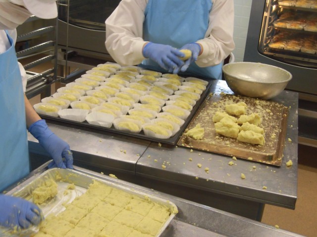 今日のデザートは、スイートポテトです。日本で生まれたお菓子です。今日のスイートポテトは、「シルクスイート」という品種のさつまいもを使っているので、甘くてなめらかな食感です。
