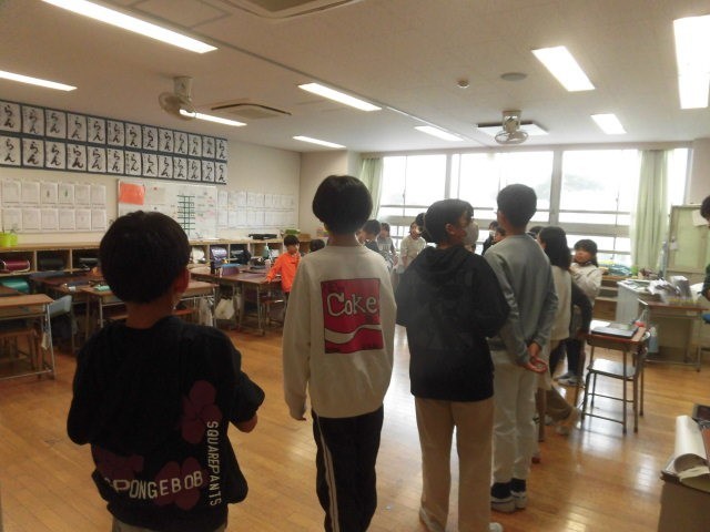 給食時間のあと、久しぶりのフレンズタイム(異年齢縦割り班活動)がありました。教室でそれぞれの班が楽しい遊びで盛り上がっています。にぎやかな声が上がる班が多い中、静かな遊びを行っている班があります。伝言ゲーム、出席番号で並ぶ、それもしゃべらないようにして、という内容でした。それを1年生から6年生までが協力して成し遂げている様子が、微笑ましく感じました。回数を重ねてだいぶ仲良くなってきたかな。