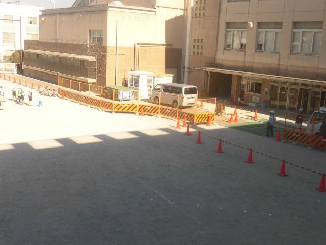 よく晴れた一日となりました。今日は強い風がなかったので、日なたは暖かく、体育の時間に寒さで身を震わせるということはなかったようです。先週からの昇降口付近の改修工事が続いています。工事エリアを区切り、校庭での体育はできるように場所を確保しています。時間によっては3クラスくらいが同時間に授業を行っています。体育館も床工事を行っています。工事が終了して使いやすい校庭、体育館になる日が待ち遠しいですね。