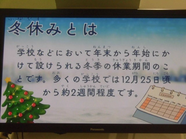 年末年始を含む冬休みは、2週間です。年が変わるということで、大きな変化のように感じますが、2週間後には3学期の始業式なので、あっという間に過ぎてしまう休みかもしれません。