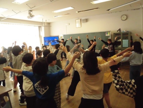 別の教室では、「お手玉教室」が行われていました。先日も紹介しましたが、ダンスをしながら体を大きく動かしてお手玉をしました。笑顔があふれる「お手玉教室」でした。