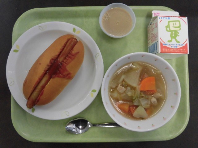 児童からは、「ホットドッグ、カフェオレゼリーがとてもおいしかったです。」との感想がありました。