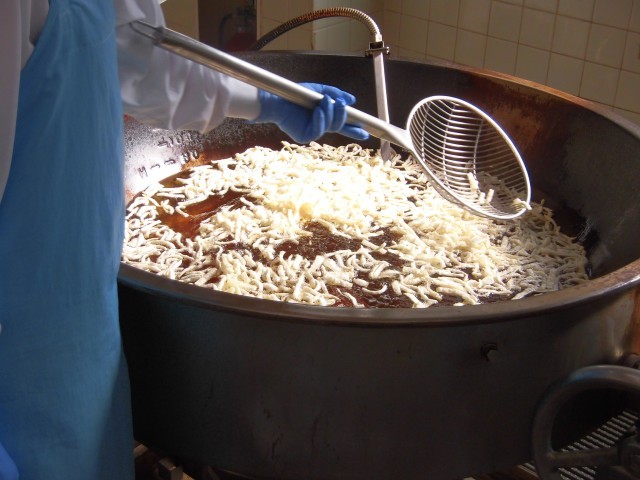 今日の副菜は、パリパリサラダです。主食・おかず部門で3位に選ばれた料理です。パリパリの部分は、ワンタンの皮を細く切り、油で揚げて作りました。果物は旬の「せとか」です。