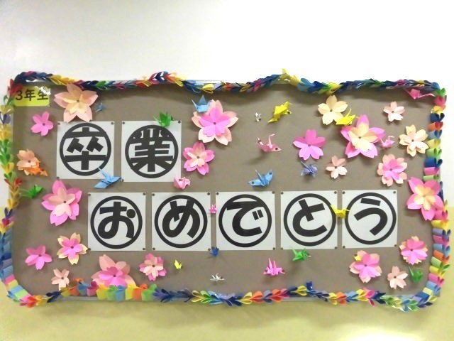 校庭ではBOPの子どもたちが遊んでいます。校内の掲示板には各学年が作成した「卒業おめでとう」の装飾が、お祝いの気持ちを伝えています。明るい春の訪れを感じるとともに、なんとなく寂しい気持ちも湧いてきます。