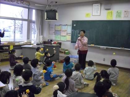 手作りのお手玉を1人に2つずつ用意して下さり、子供たちは大喜び。
