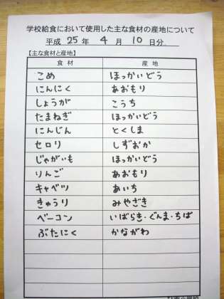 4月10日の給食食材産地